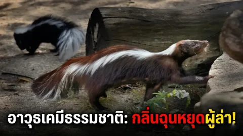 สกังค์ใช้สเปรย์ป้องกันตัว กลิ่นฉุนทำผู้ล่าถอยหนีแม้ตัวใหญ่กว่า